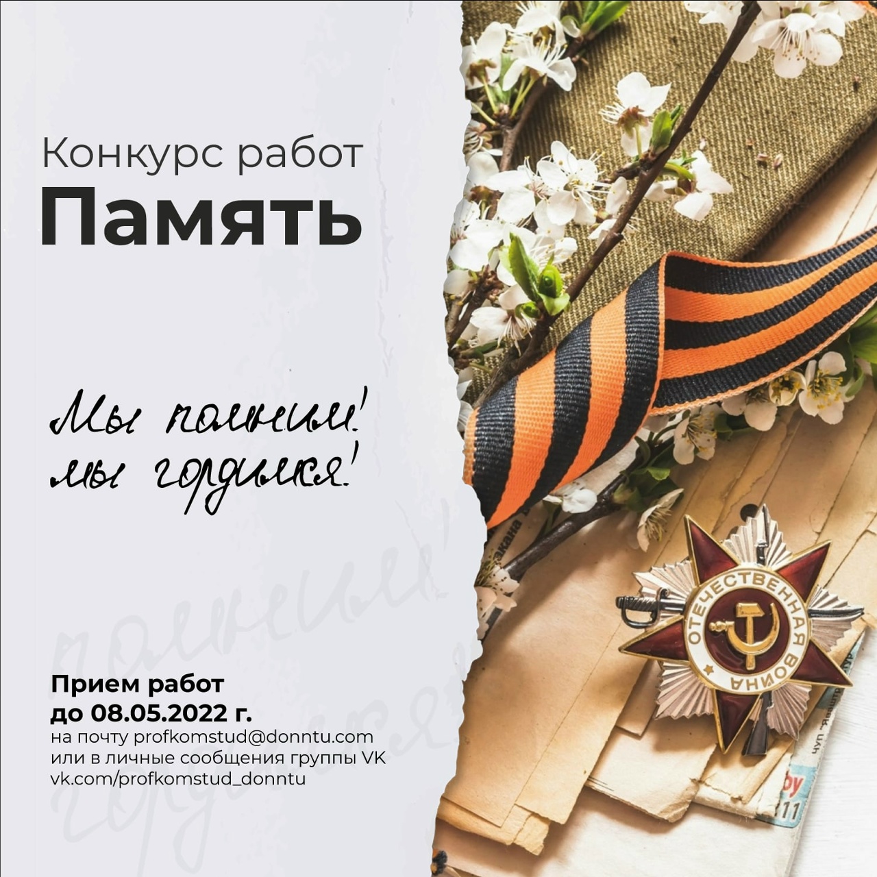 Мы объявляем конкурс работ «Память». Покажите своё отношение и восприятие Победы и событий Великой Отечественной войны.